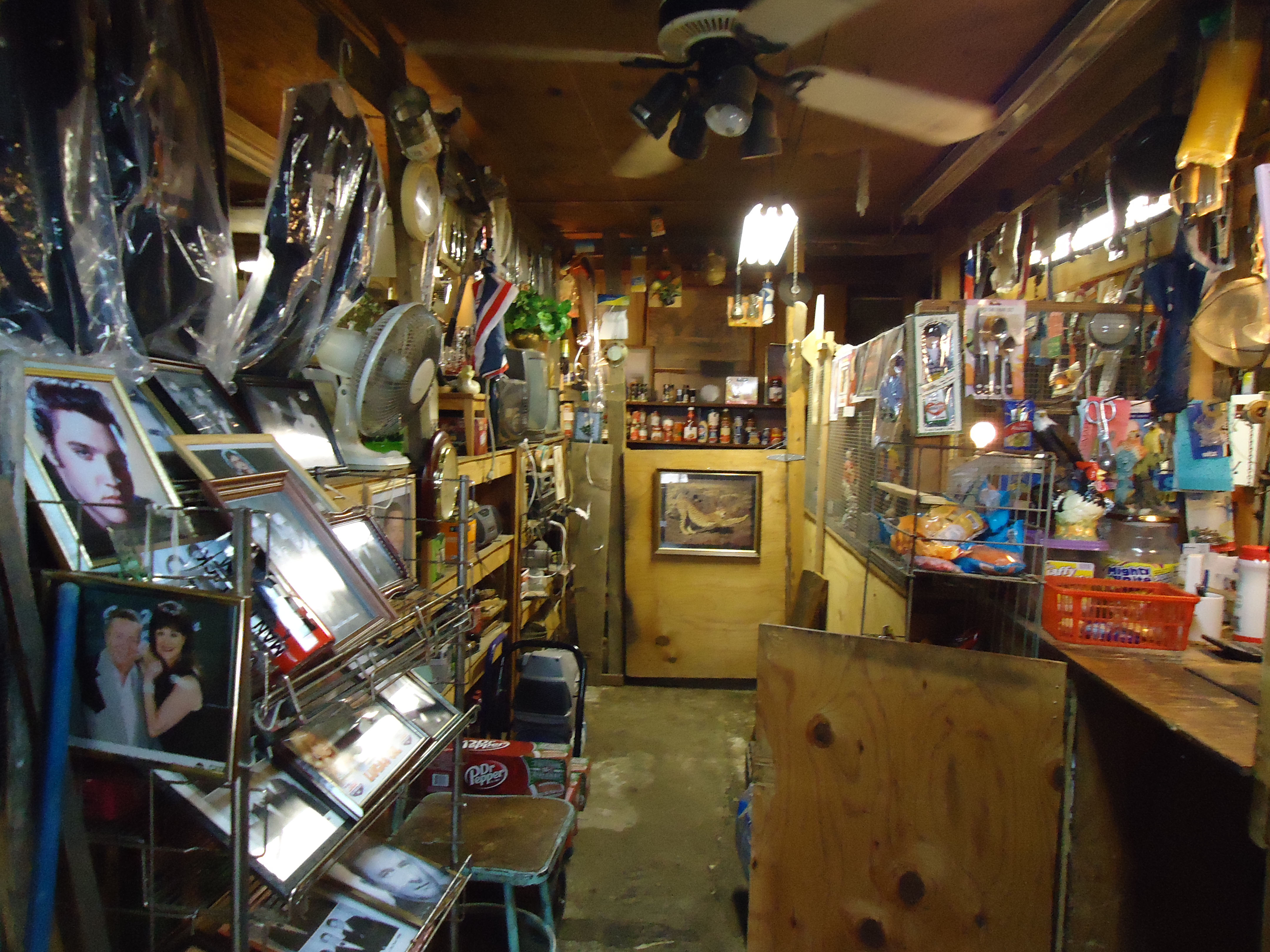 Als wir das Drugstore betreten, haben wir Muehe – es ist dunkel und mit randvoll mit allerlei Kram – den kleinen alten Mann hinter der Theke zu finden. Freundlich erzaehlt er – er mag schon 90 sein – dass er Gene Williams noch persoenlich gekannt habe. „Cash?“ Ja klar, den auch, aber Williams scheint ihm wichtiger zu sein. Williams war auch ein Countrystar wissen wir nun. Aber fuer uns wiederum nicht so bedeutend wie Cash.