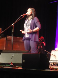 Mit der Unterstützung ihrer tollen Band – Scottie Miller an Tasteninstrumenten und Mandoline, Samantha Banks an Drums, Percussion und Spoons sowie Larry Fulcher, ganz zurückhaltender Bassist, der aber viel für den Zusammenhalt der Band tut – nimmt sie das Publikum mit auf eine Reise durch den Süden mit. Unglaublich, mit wieviel Energie und Stimme die nicht sehr große Frau in der Lage ist, ihren Songs Aus- und Nachdruck zu verleihen.