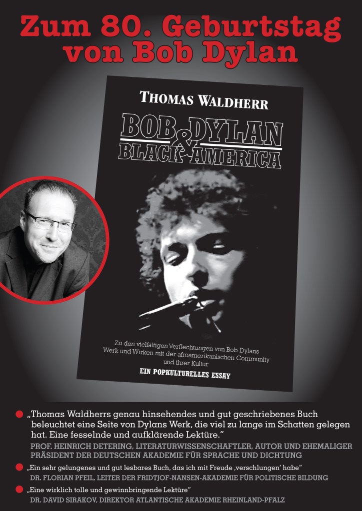„Thomas Waldherrs genau hinsehendes und gut geschriebenes Buch beleuchtet eine Seite von Dylans Werk, die viel zu lange im Schatten gelegen hat. Eine fesselnde und aufklärende Lektüre.“ Dies schrieb Heinrich Detering, seines Zeichens einer der besten Dylan-Kenner des Landes, zum neuen Buch „Bob Dylan & Black America“.