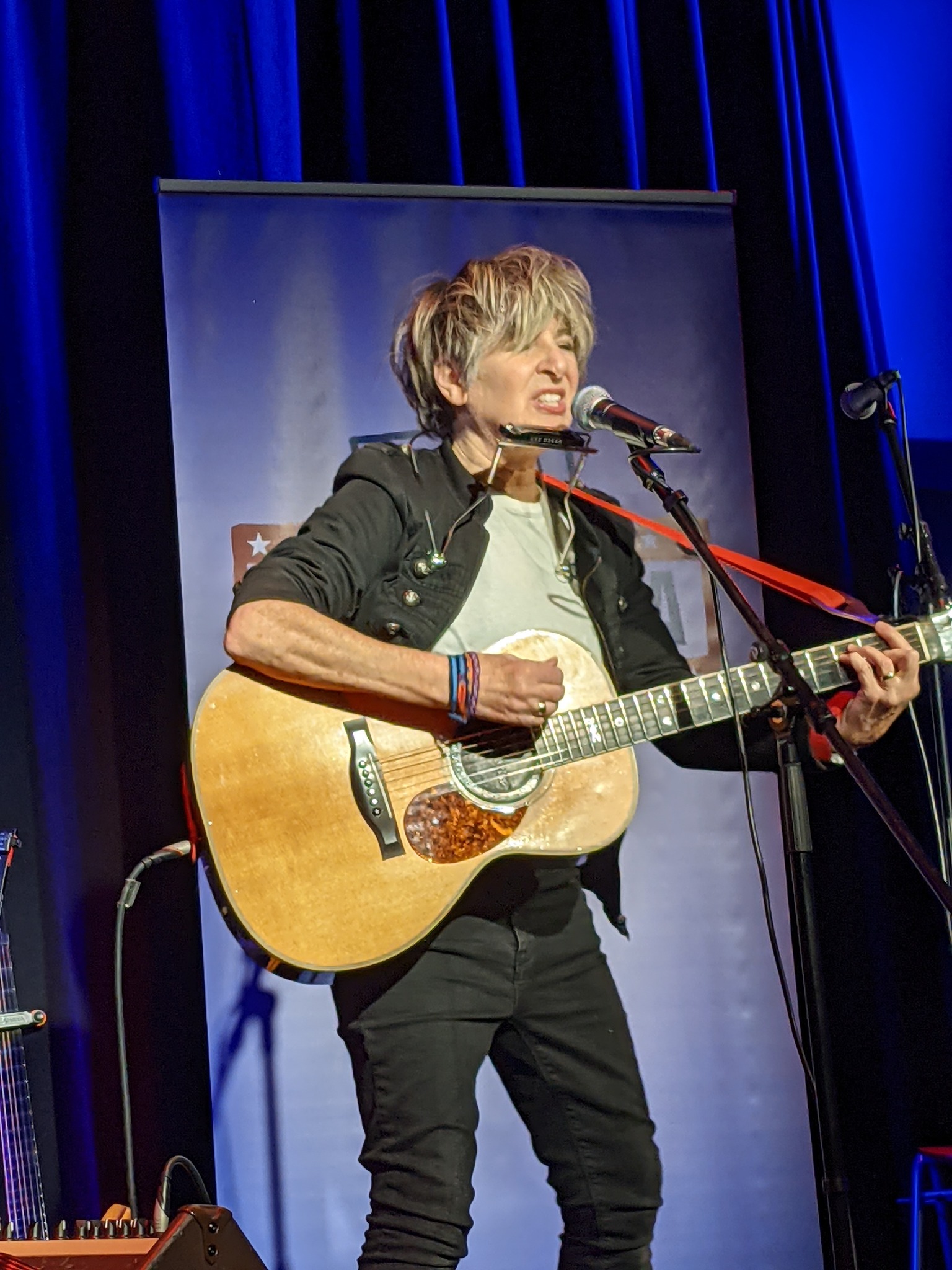 Allein ihre wundervolle Klavierversion des Klassikers „What A Wonderful World“ berührte schon die Herzen. Ebenso wie ihr zärtliches „The Princess & The Honeybee“. Sie ist eine wunderbare Menschenfreundin und Menschenfischerin, schnell hatte sie das Publikum in ihrem Bann und wechselte stets zwischen gefühlvollem und engagiertem Liedgut. Kaum einer beherrscht das so wie die mehrfach Grammy-nominierte US-Singer-Songwriterin, deren Cousin Bob Dylan und ihr wichtigster Einfluss Phil Ochs ist. Und so spielte sie John Lennons „Imagine“ ebenso wie ihren eigenen Protestsong „The Banker“, streute politische Mahnungen wie „By My Silence“ (nach Martin Niemöller) ebenso ein wie Songs über die eigene Identität („Me Too“).