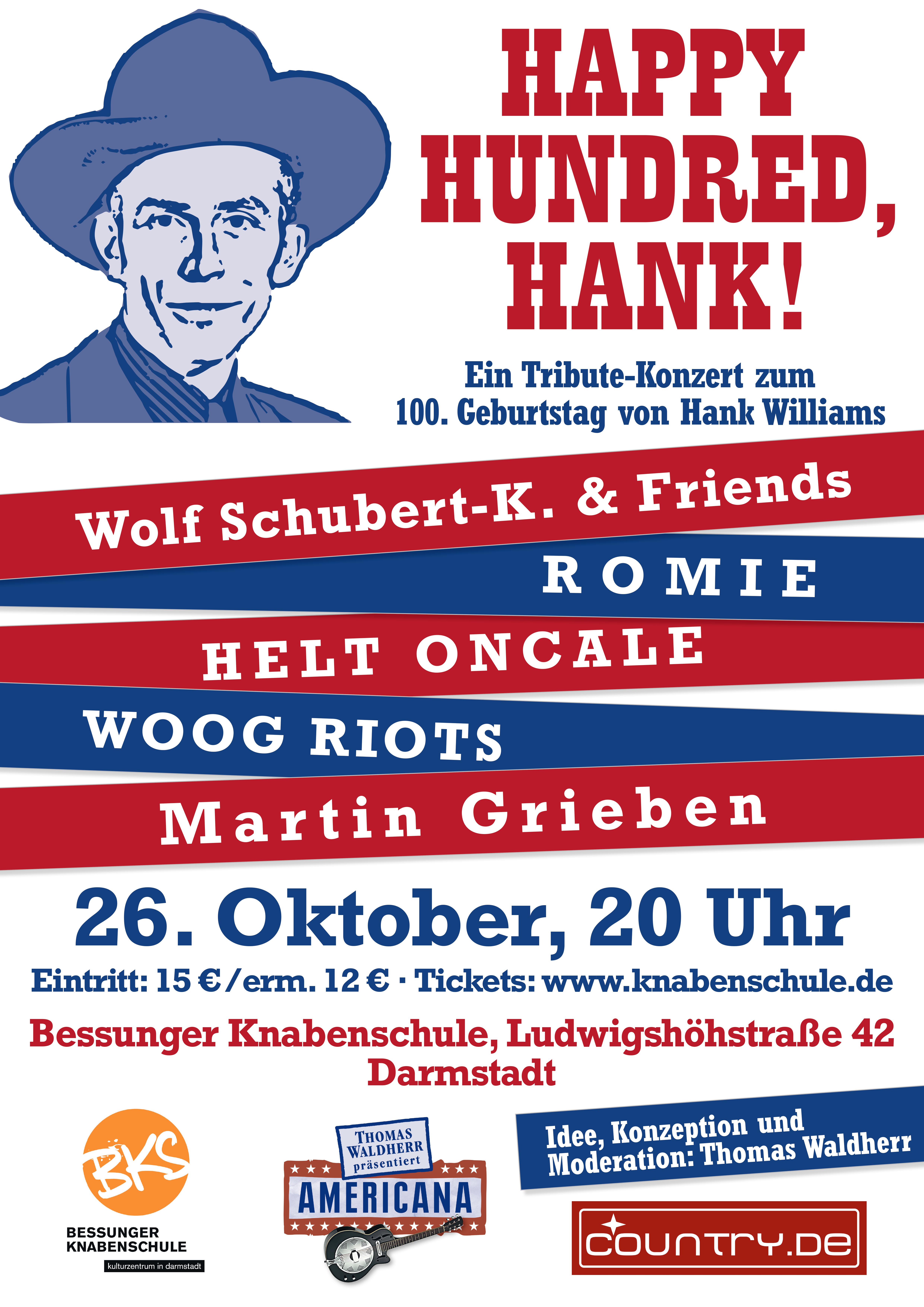 Doch keine Sorge,am 26. Oktober beim großen Hank William-Tribute werde ich allenfalls im Hintergrund mitsingen, denn da stehen die Hank Williams-Interpretationen der Künstler:innen Wolf Schubert-K. & Friends, Romie, Helt Oncale, Martin Grieben und Woog Riots im Mittelpunkt. Das wird ein toller Abend, jetzt Karten sichern unter http://www.knabenschule.de !