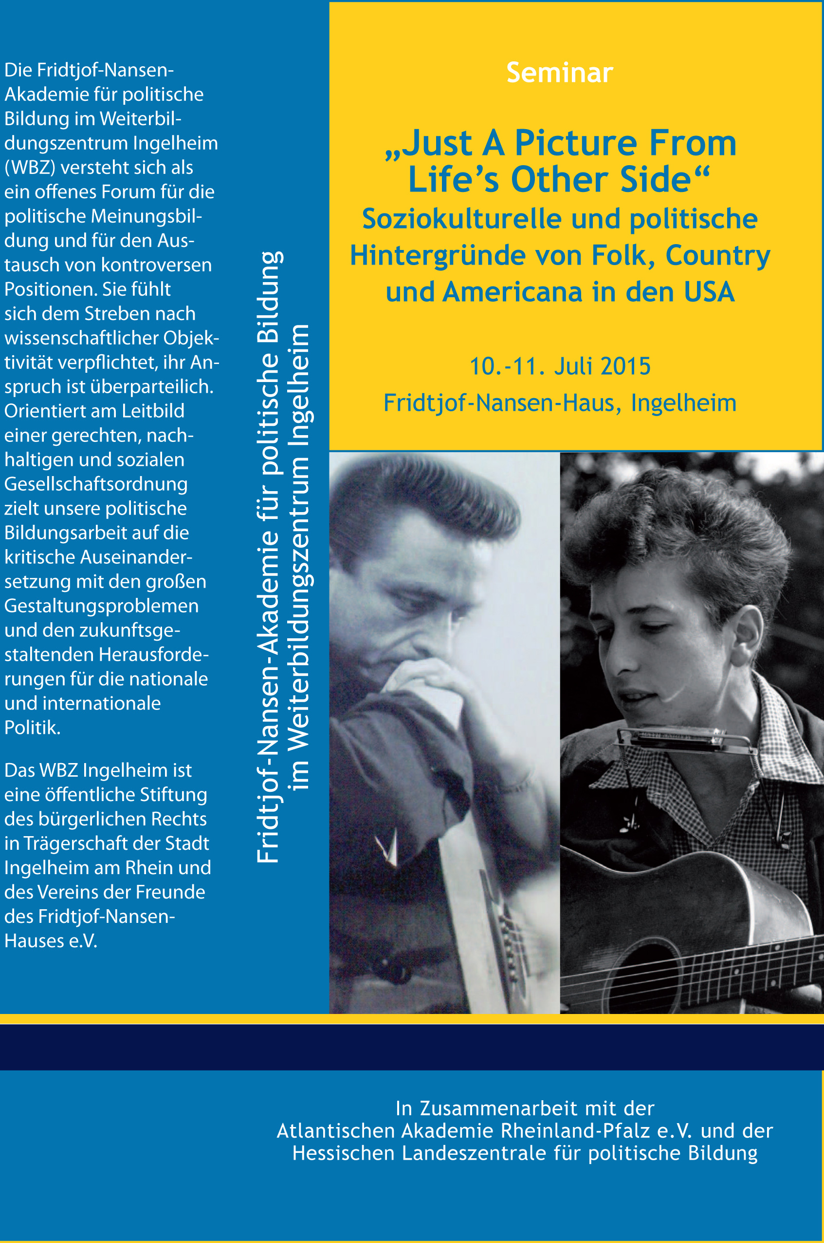 Ein besonderes Bildungsangebot für Country & Folk-Freunde veranstaltet das Fridtjof-Nansen-Haus in Ingelheim in Zusammenarbeit mit der Atlantischen Akademie Rheinland-Pfalz e.V. und der Hessischen Landeszentrale für Politische Bildung am Freitag, 10. Juli, und Samstag, 11. Juli. Zwei Tage lang beleuchtet der Country.de-Redakteur und Bob Dylan & Americana-Experte Thomas Waldherr unter dem Titel „Just A Picture From Life’s Other Side“ die soziokulturellen und politischen Hintergründe von Folk, Country & Americana vom Ende des 19. Jahrhunderts bis in die heutige Zeit.